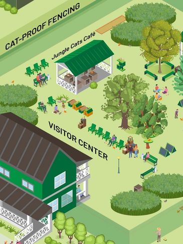 Popoki Place will have multiple large enclosures surrounded by secure fencing in a lush setting. Cats will feel like they are free-roaming but cannot escape the enclosure and will have all of their needs met. See how it will work.